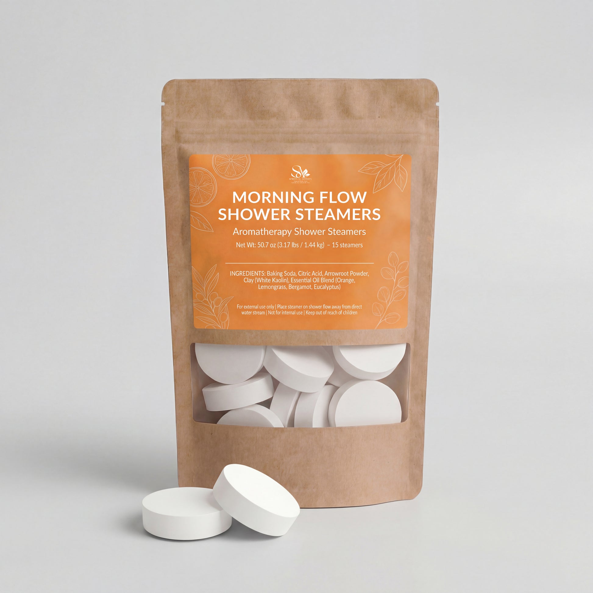 Each steamer releases a powerful burst of uplifting essential oils bright Orange, invigorating Lemongrass, mood-boosting Bergamot, and clarifying Eucalyptus creating a spa-like experience right in your shower.