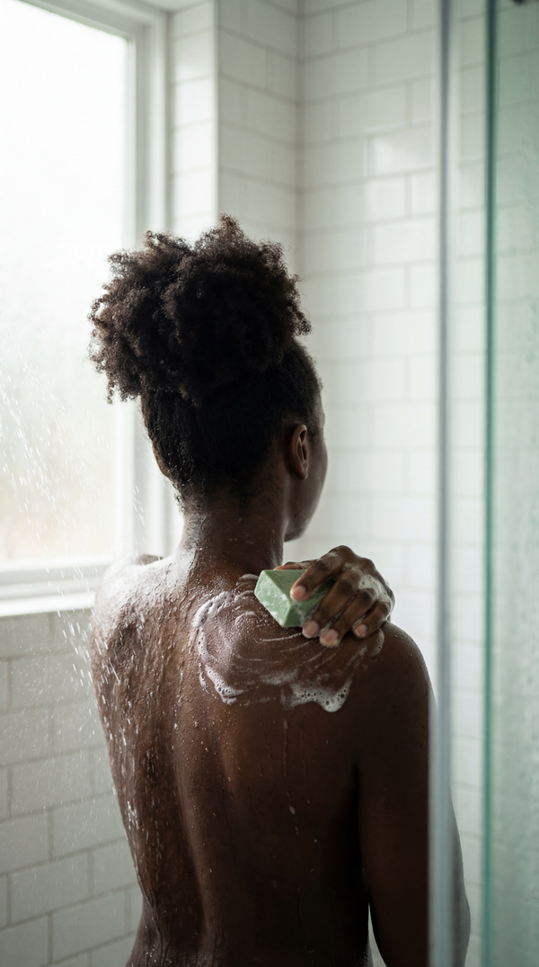 "As someone who struggles with anxiety, my shower is the one place I can actually breathe. The Radiance Butter and Calm soap together feel like a hug for my nervous system. I've never used products that made me feel this safe in my own body."